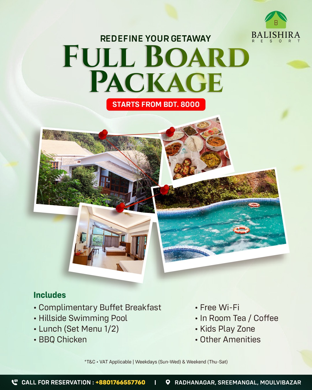 Balishira Resort is a nature-friendly luxury resort in Sreemangal’s hilly forest and tea gardens. It offers villas and cottages with views of a natural water stream, making it a perfect destination for nature lovers. The resort features modern amenities, including spacious rooms, a restaurant, complimentary breakfast, a private pool, air conditioning, WiFi Facilities, a kids’ play zone, and tour advising, providing everything needed for a relaxing and enjoyable stay.